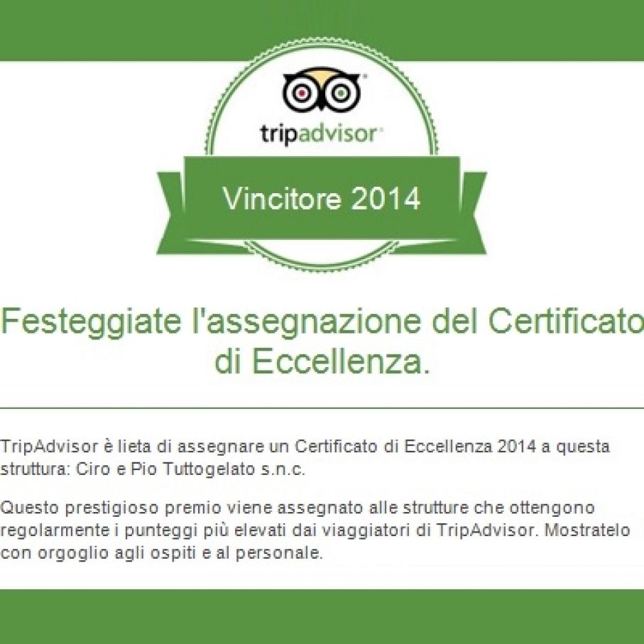TripAdvisor è lieta di assegnare un Certificato di Eccellenza 2014 alla struttura Ciro e Pio Tuttogelato s.n.c.